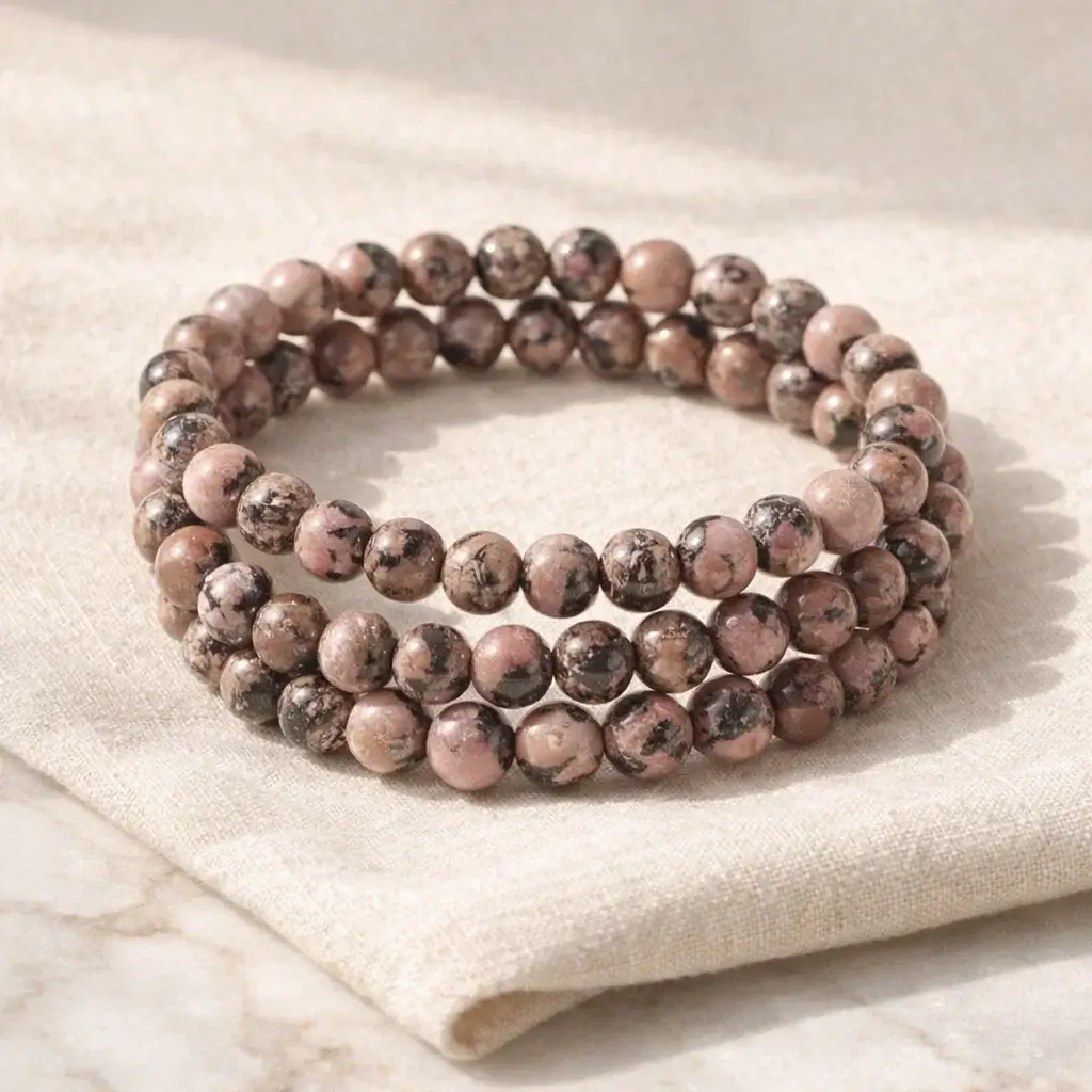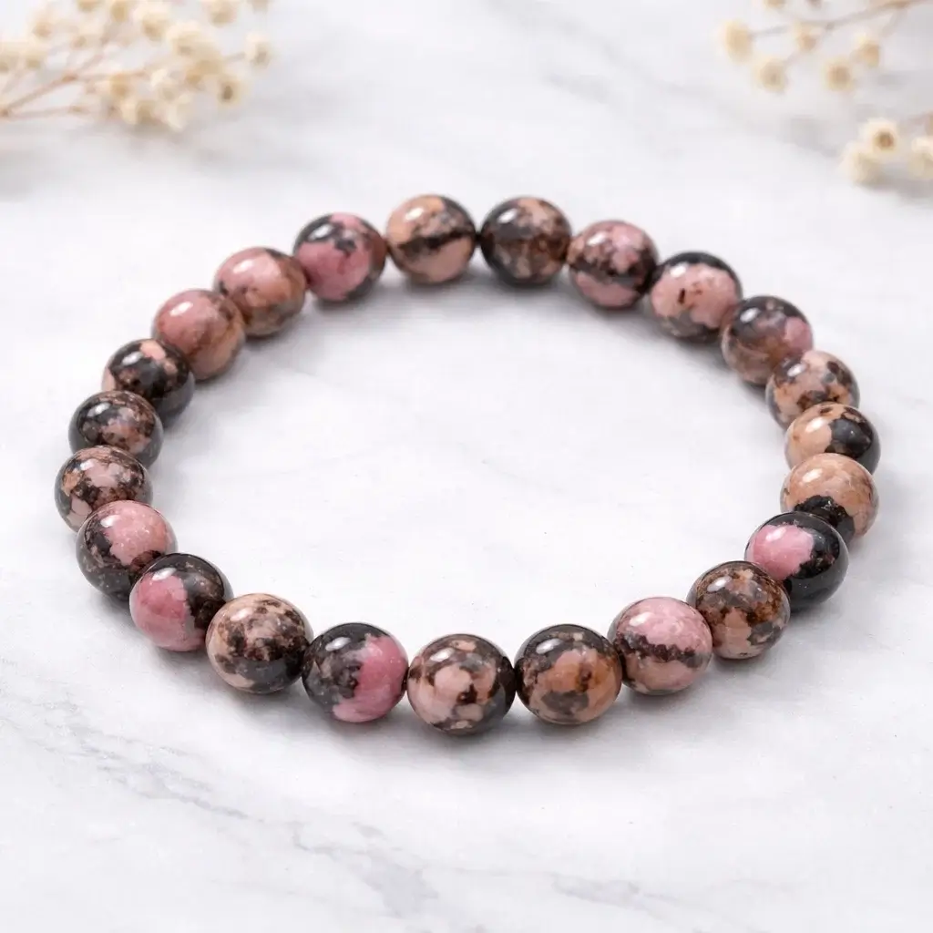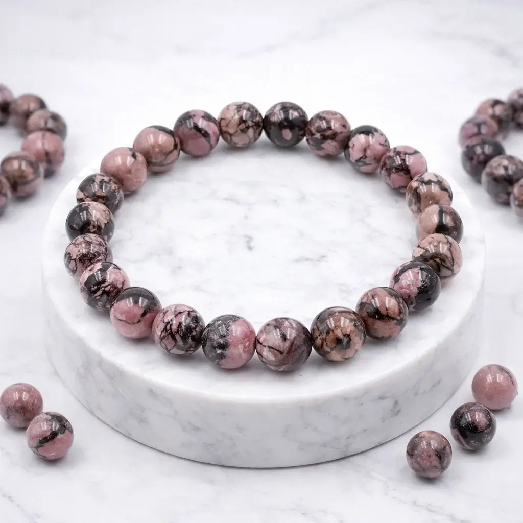 Embrace gentle strength and emotional harmony with this Natural Rhodonite Bracelet, crafted from genuine pink gemstone beads. Rhodonite is often called the stone of compassion, believed to support emotional healing, self-love, and balanced relationships.