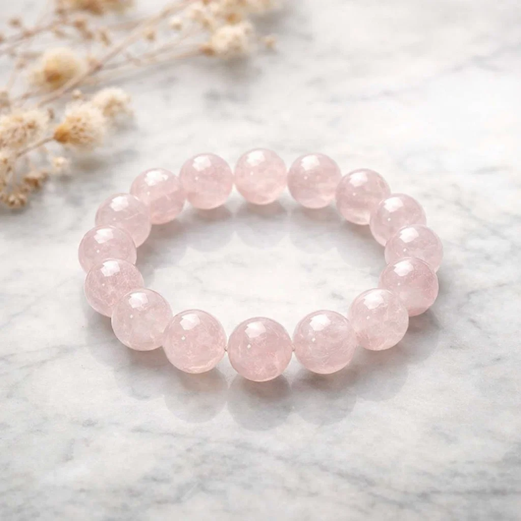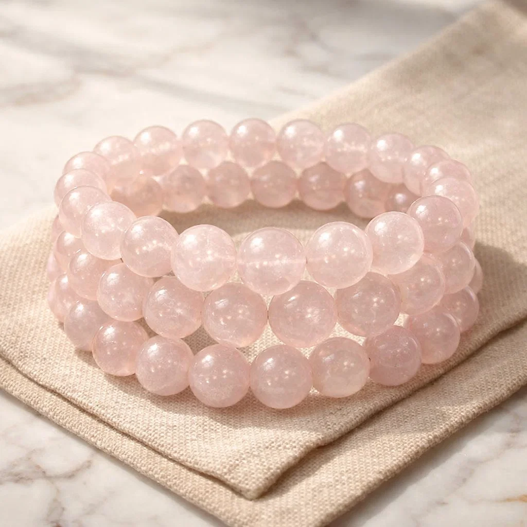 Rose Quartz is widely known as the stone of unconditional love. It is believed to open the heart chakra, encourage emotional healing, and attract positive, loving energy. This bracelet supports self-love, harmony in relationships, and emotional balance, making it a meaningful accessory for everyday wear or gifting.