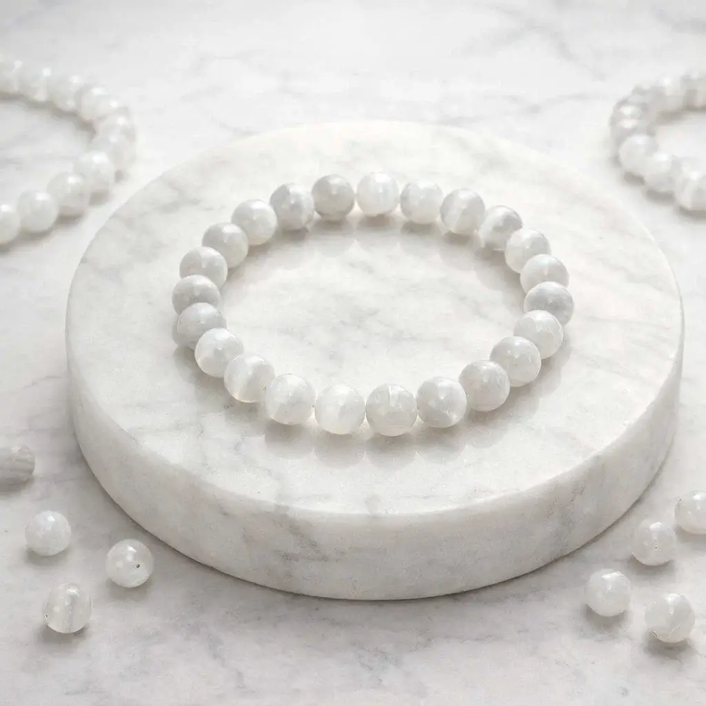 Comfortable to wear and visually soothing, this bracelet pairs beautifully with minimalist outfits or layered crystal jewelry. Whether worn for its spiritual significance or its clean, elegant appearance, the Selenite Grande Gems Bracelet offers timeless beauty with meaningful energy.